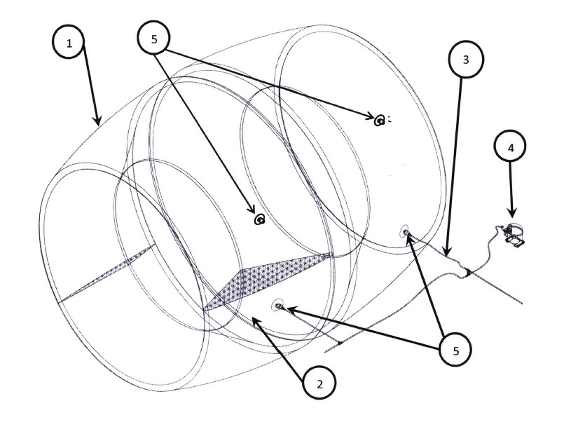 -La invención está constituida por dos secciones indepedientes, la sección de mayor volumen es la que contiene al fluido de sustentación, la sección de menor volumen es la que contendrá al fluido de lastre.